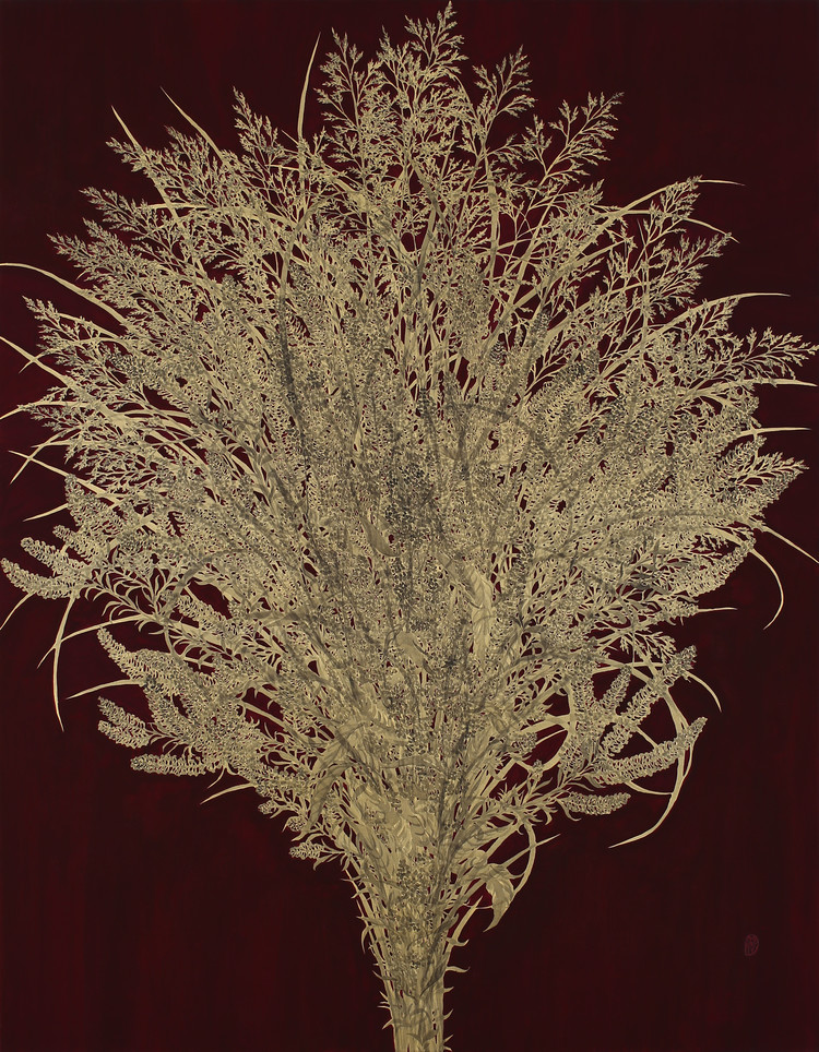 Grass Portrait 2023 Ink & Gold Powder on Silk 116.8㎝×91㎝